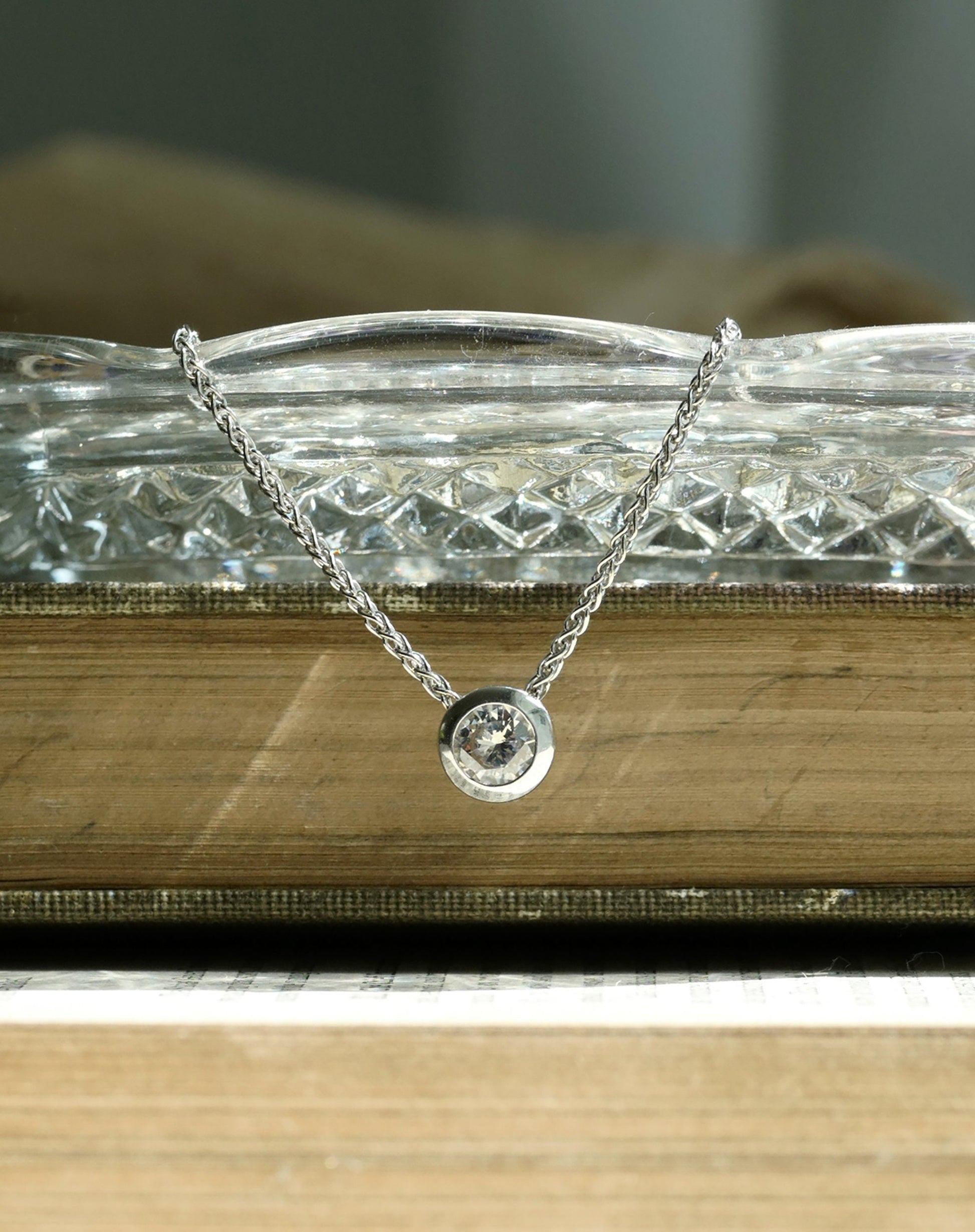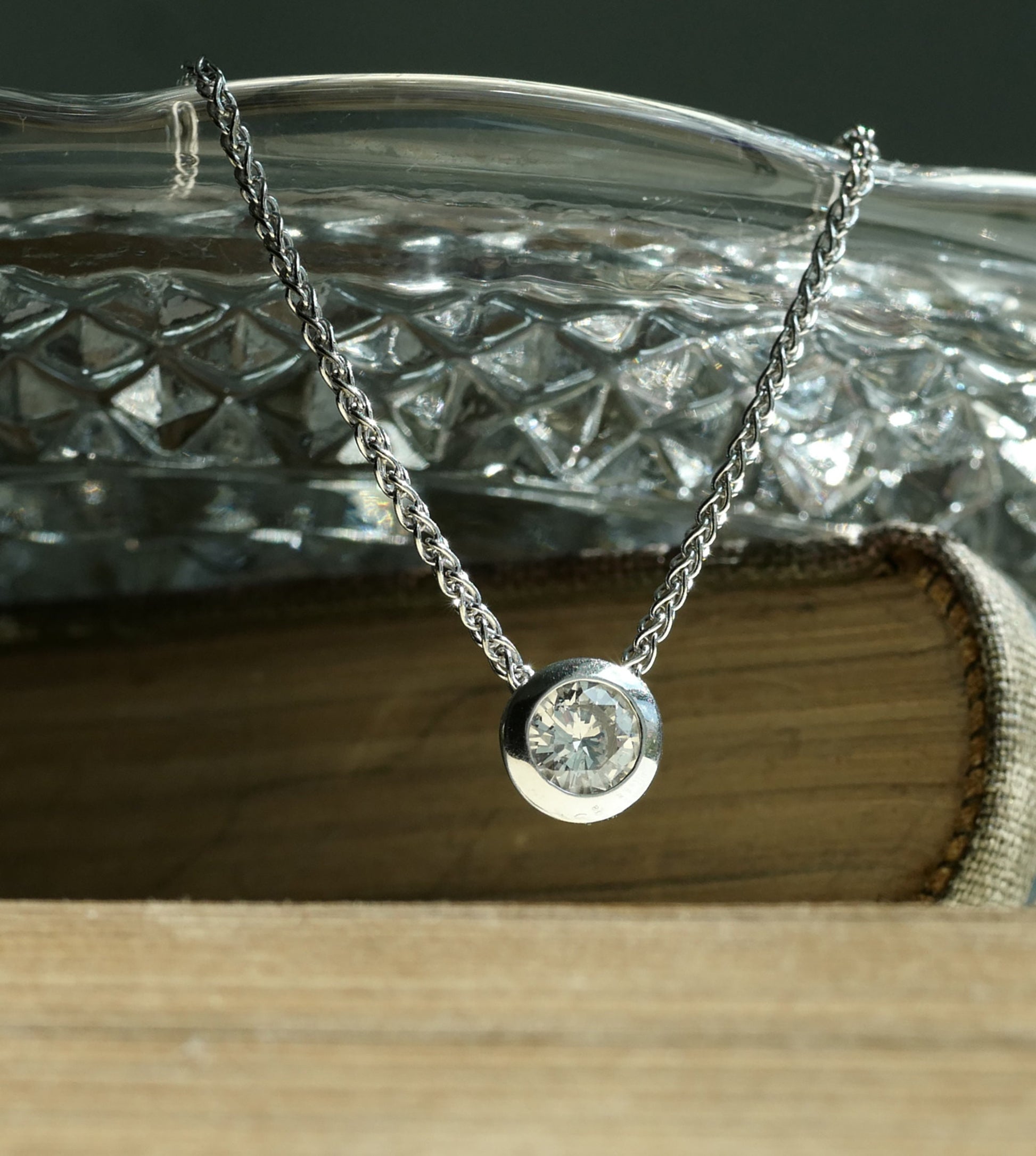 Natural Diamond Solitaire Slide Pendant on 14KT White Gold - Transitional European Cut Custom Necklace